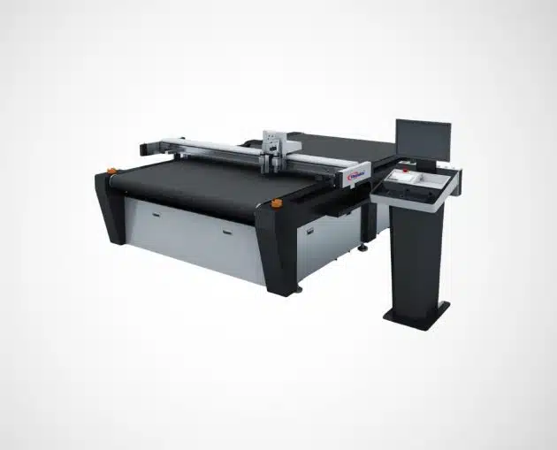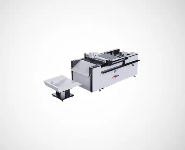 A versatile machine with a flatbed surface and movable blade head, capable of cutting, scoring, and half-cutting intricate patterns with precision—without the need for physical dies. Ideal for producing complex, custom packaging designs on demand.