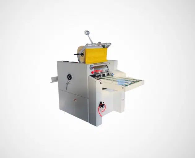 Compact manual laminator for sheets up to 365 mm — perfect for small jobs, easy operation, and space-saving use.