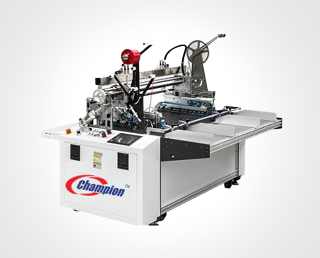 Champion TLay-1100 – Manual double side tape machine with two applicators for 5–35mm tape. Features easy operation and precise control via touchscreen. Ask ChatGPT