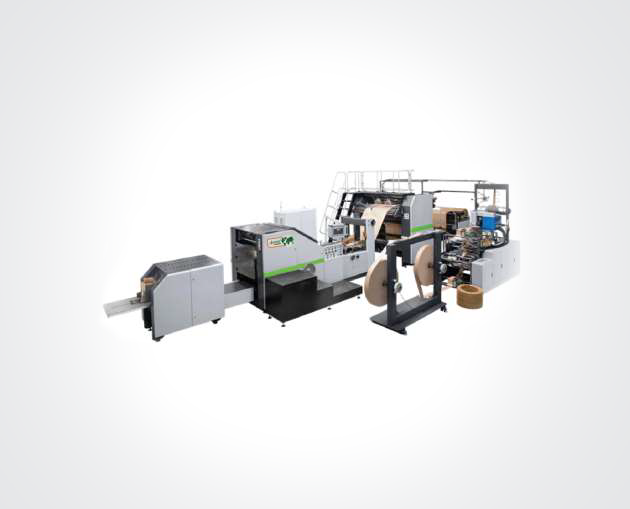 Automatic Square Bottom Paper Bag Making Machine with Inline Twisted and Flat Handle Unit – consistently produces up to 150 bags per minute, even with challenging paper stock.
